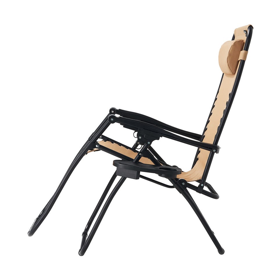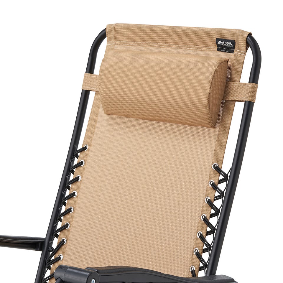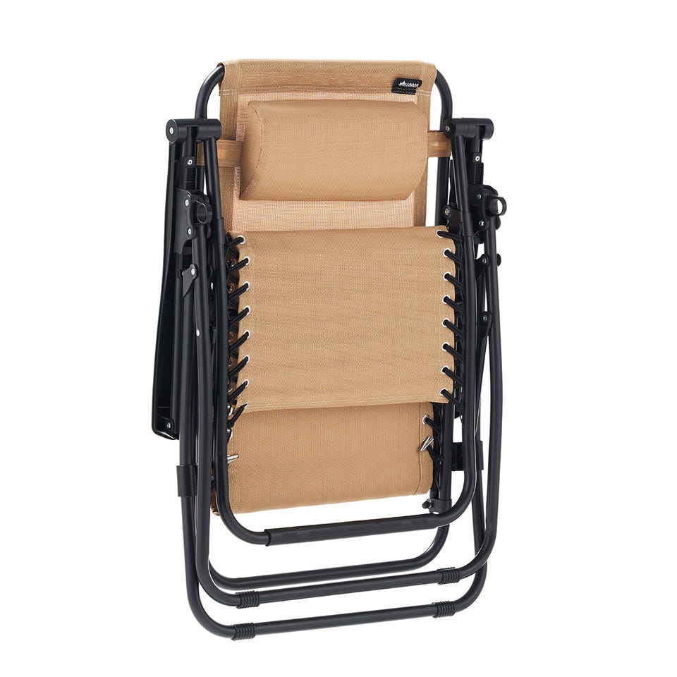 背もたれをお好みの角度に設定できる、無段階調節のリクライニングチェア。シート部分には通気性が高く、水や日差しにも強いテスリンメッシュ素材を採用。
