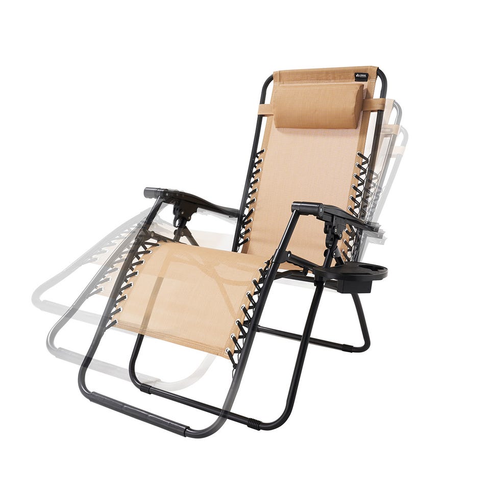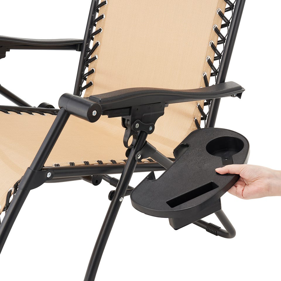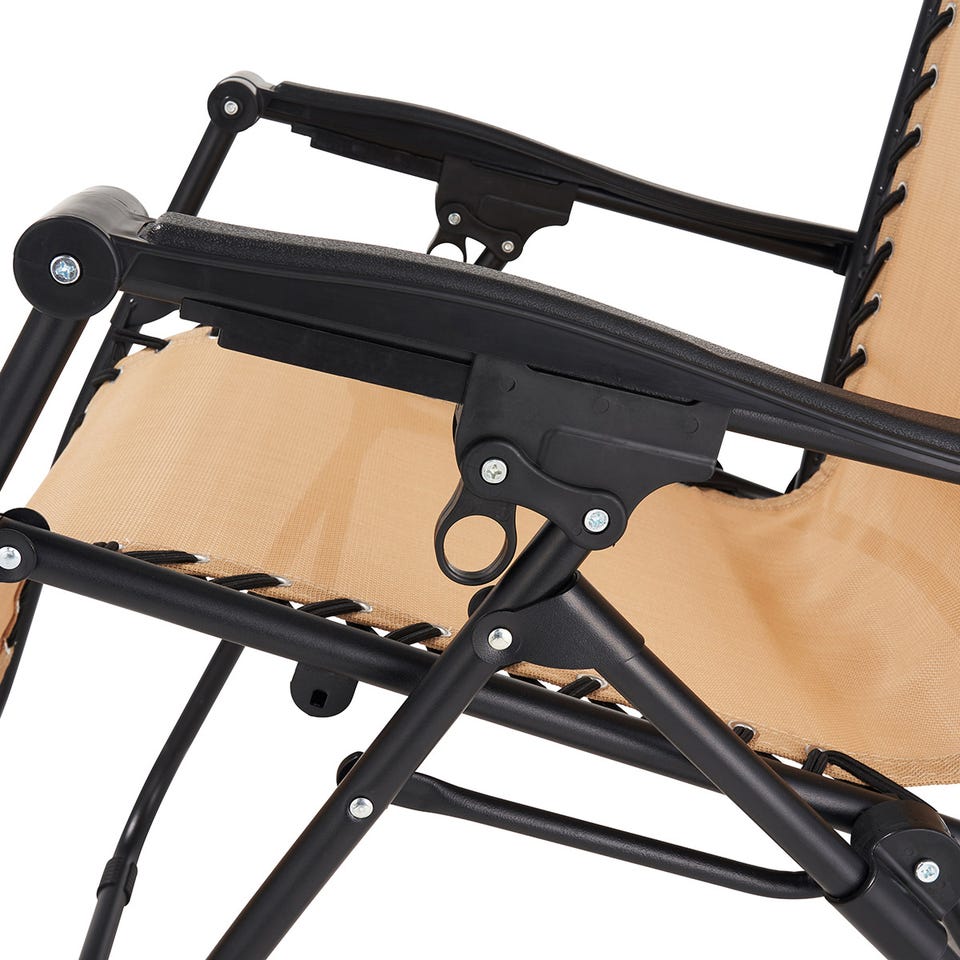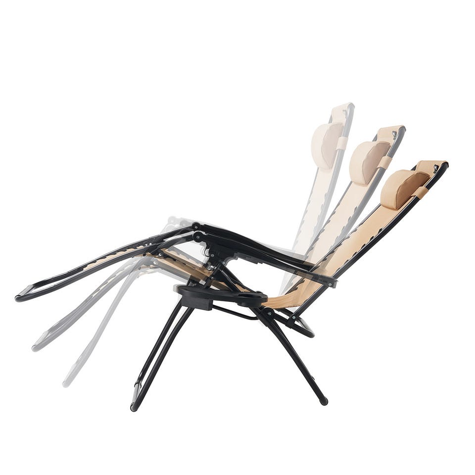 背もたれをお好みの角度に設定できる、無段階調節のリクライニングチェア。シート部分には通気性が高く、水や日差しにも強いテスリンメッシュ素材を採用。