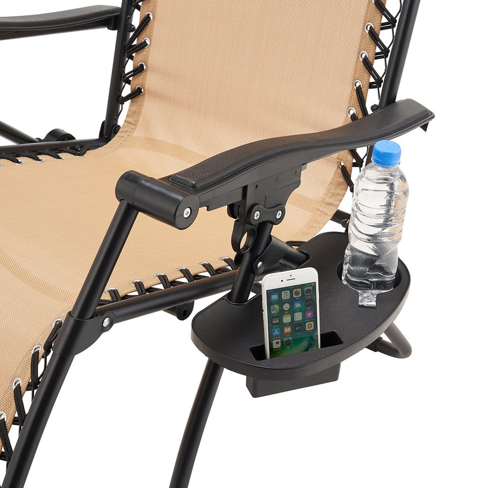 飲み物やスマホの置き場に困らない、着脱式のサイドテーブルが付属。
