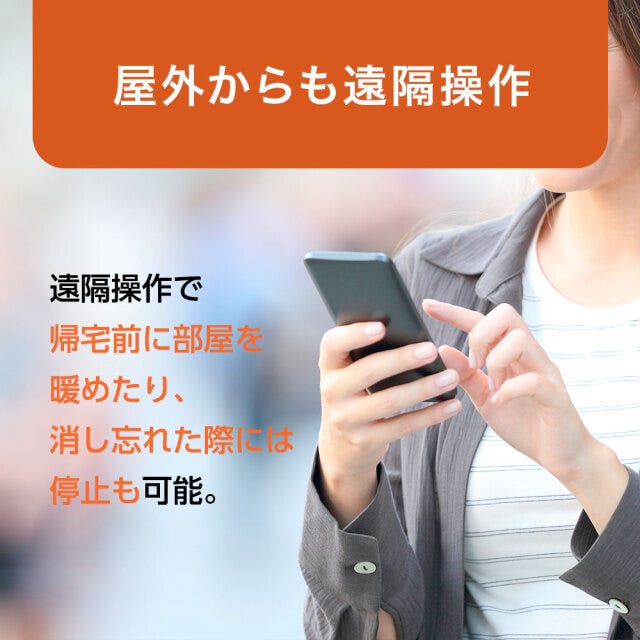 Google アシスタント、Amazon Alexaを搭載したスマートスピーカー、Siriに話しかけるだけでヒーターの電源ON/OFFや、温度調整が可能。
