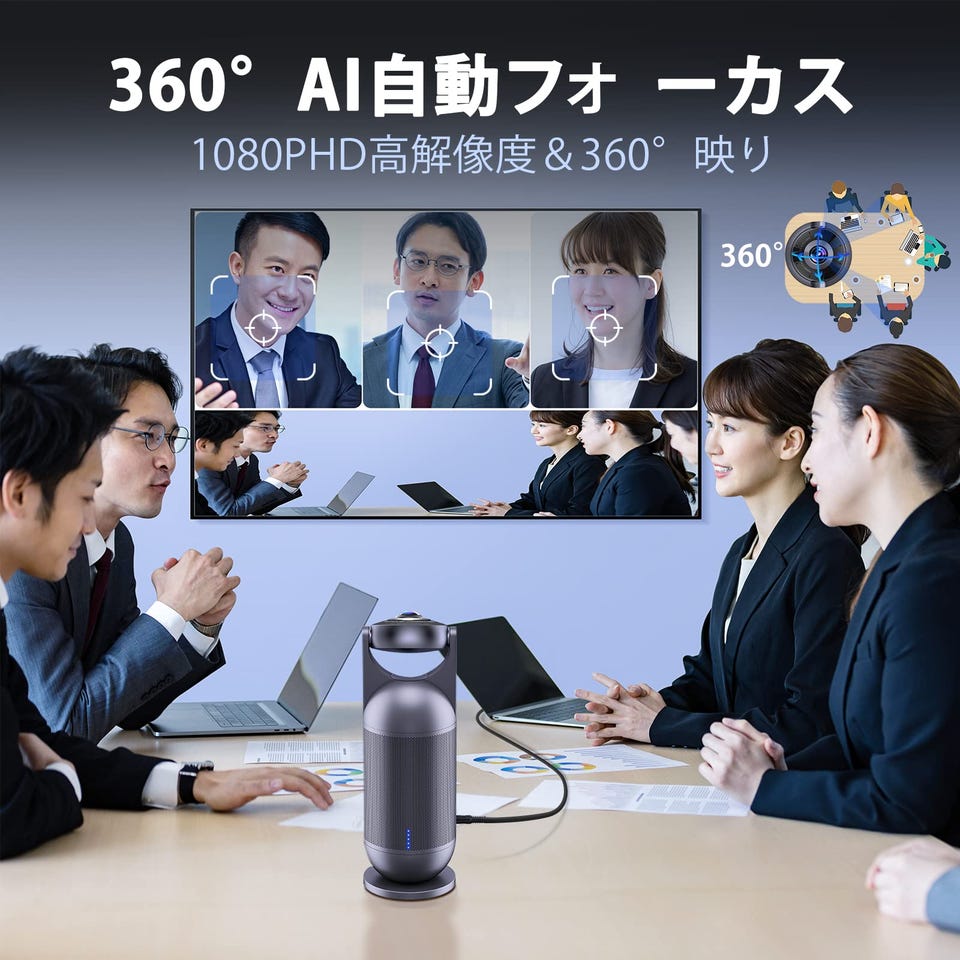 VoiceIAを搭載し、ノイズリダクションアルゴリズムを強化し、8つのマイクロフォンアレイと全二重スピーカーで360°音声キャプチャーできます。Webカメラはマイクロフォン付きで参加者全員の声がはっきり且つクリアに聞こえます。