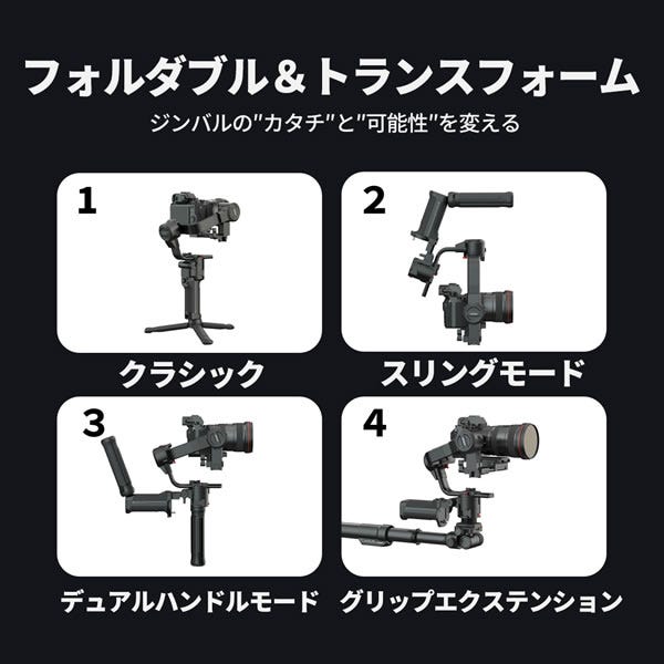縦位置撮影を好む方にはオススメ。これは片手でハンドル、もう片方の手で水平ハンドルを握ることで、より高い操作性と安定性を実現し、より滑らかな、映画のような動画が撮影できます。