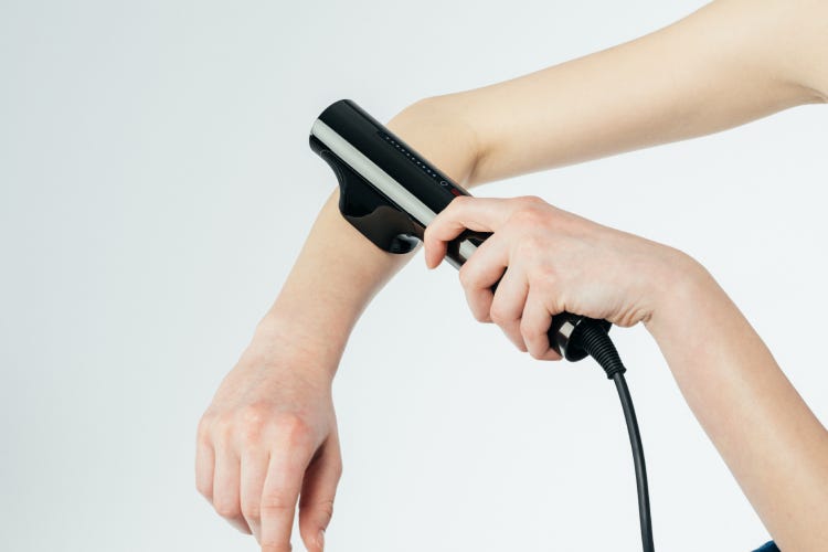 *1 1cm2あたり6.8J 照射面3.4cm2 *2 痛みを感じにくいこと