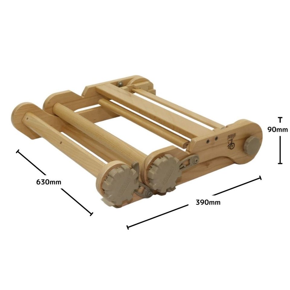 この織機は軽量かつコンパクトで、織物を所定の位置に置いたままでも半分に折りたたむことができるため、非常にポータブルです。