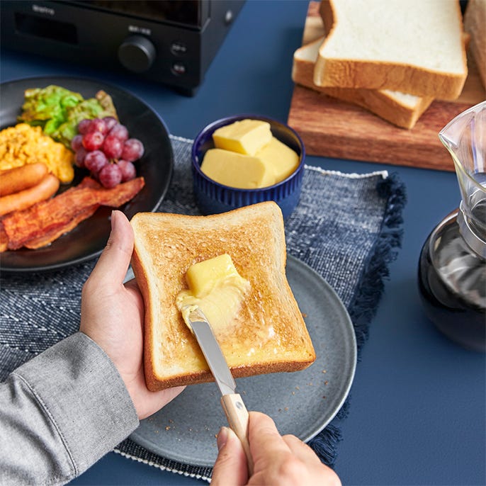 オーブントースター ビストロは、「遠近トリプルヒーター」と「インテリジェント制御」を搭載し、厚切りや冷凍の食パンも、火力や時間設定なしの自動でおいしく焼き上げます。