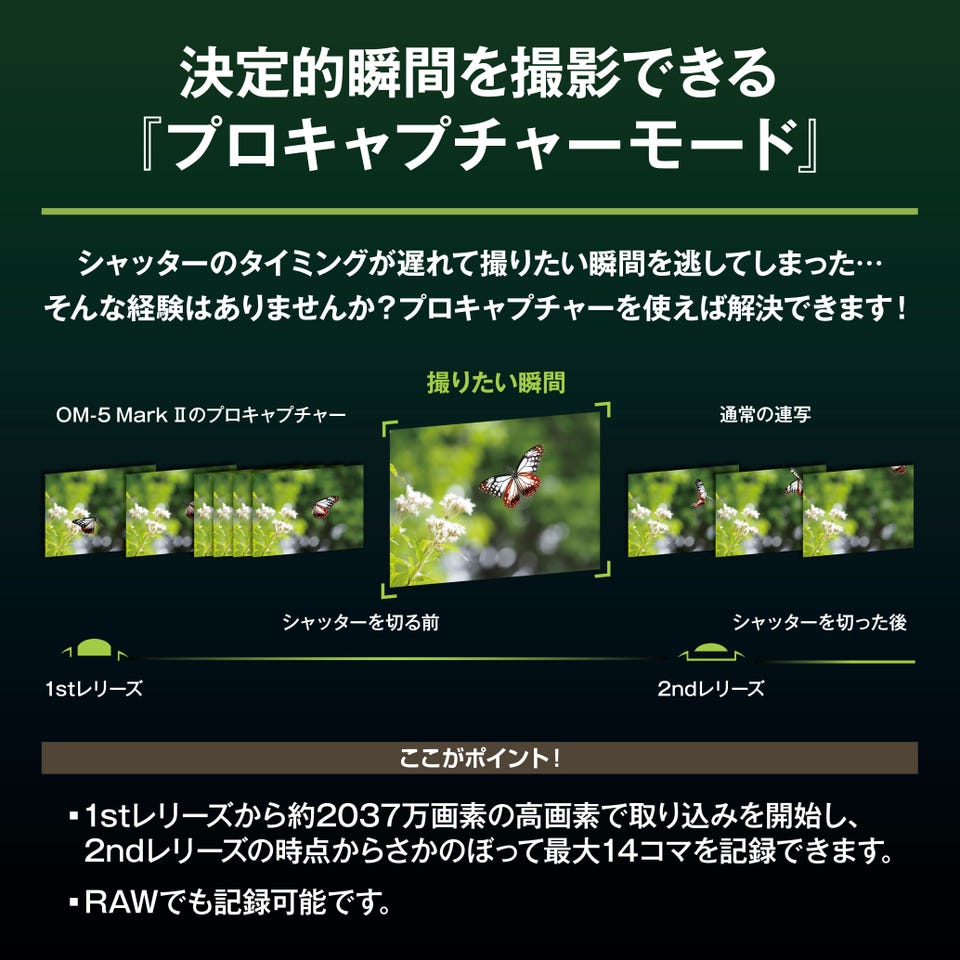 ※2 M.ZUIKO DIGITAL ED 12-100mm F4.0 IS PRO、M.ZUIKO DIGITAL ED 100-400mm F5.0-6.3 IS II、M.ZUIKO DIGITAL ED 150-400mm F4.5 TC1.25x IS PRO、M.ZUIKO DIGITAL ED 150-600mm F5.0-6.3 IS、M.ZUIKO DIGITAL ED 300mm F4.0 IS PRO