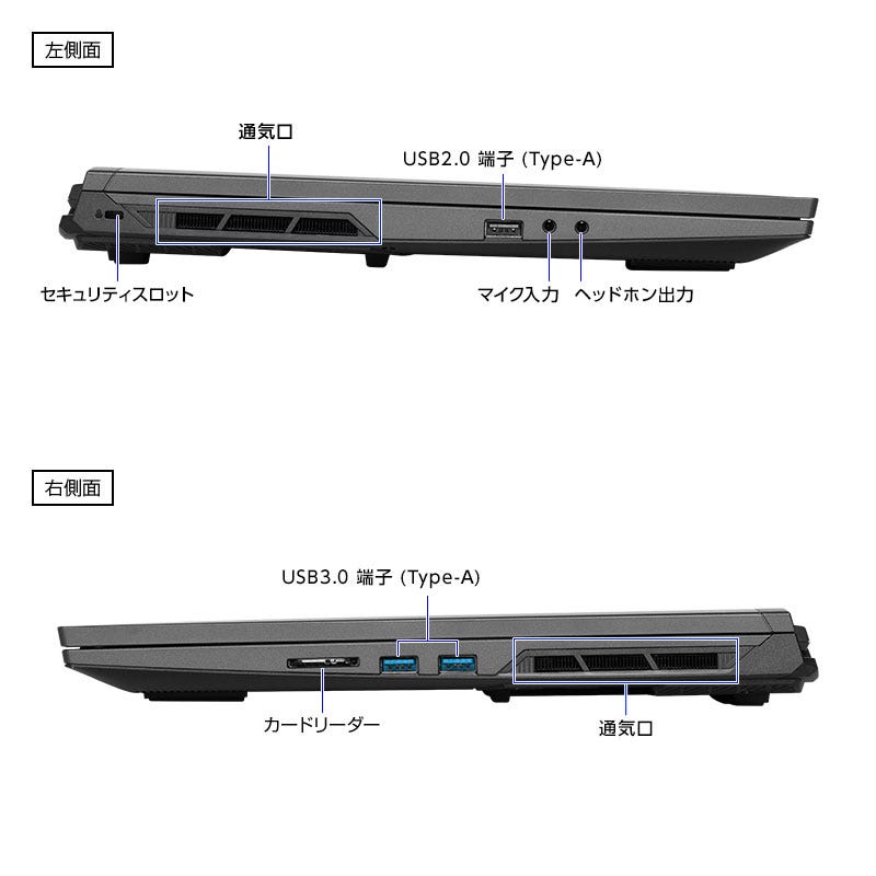 第13世代のインテルCorei7-13700Hは、高性能コアと高効率コアの2種類が搭載された、ハイブリットアーキテクチャーが採用されています。パフォーマンスを必要とするゲームの処理は高性能コア、バックグラウンドで動く配信ソフトなどの処理は高効率コアに自動で割り振りされ、各ソフトウェアをより効率的に動作することが可能となりました。また、CPUの冷却に欠かせないグリスにはリキッドメタルを採用しており、発熱を効率よくヒートパイプに伝導させることで高性能CPUのパフォーマンスを引き出すことが可能です。