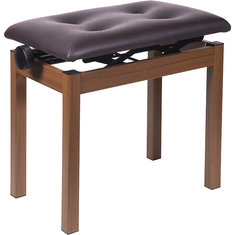 デジタル・ピアノPoetryの「Poetic Brown」に合わせた色味や木目調(塗装)を採用したピアノ椅子です。座面には装飾ボタンを用いて、Poetryに相応しい品のある質感に仕上げました。