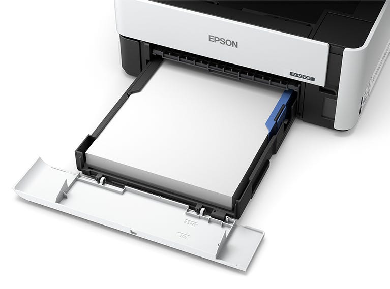 給紙トレイは前面、排紙はプリンターの天面なので、狭い場所でもストレスなくご利用できます。また、インク残量も前面から確認が可能。インク補充の操作もフロントからのアクセスでご利用できます。