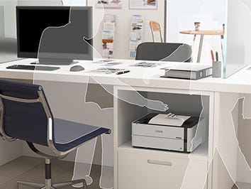 A4ビジネスインクジェットプリンターとして初の天面排紙モデル。排紙トレイが飛び出さずコンパクトなデザインなので、店舗や病院カウンター、バックヤードのような狭いスペースでもすっきり収まります。