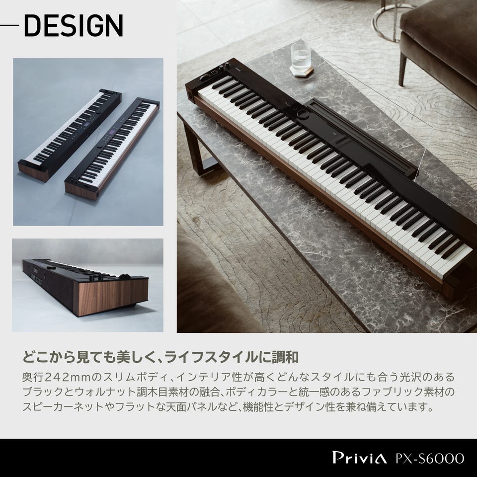 Privia PX-S6000は、直感的な音のコントロールを可能にし、演奏を思いのまま楽しめる一台です。
