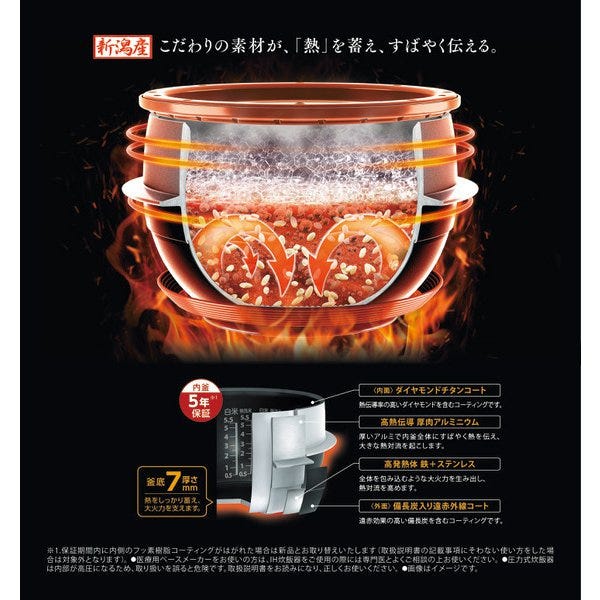 真空保温 : 白米40時間 /(エコ炊飯・玄米・白米混合・麦ご飯・雑穀米 保温12時間)