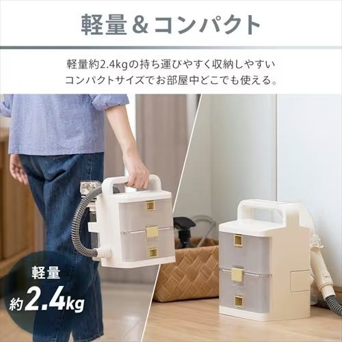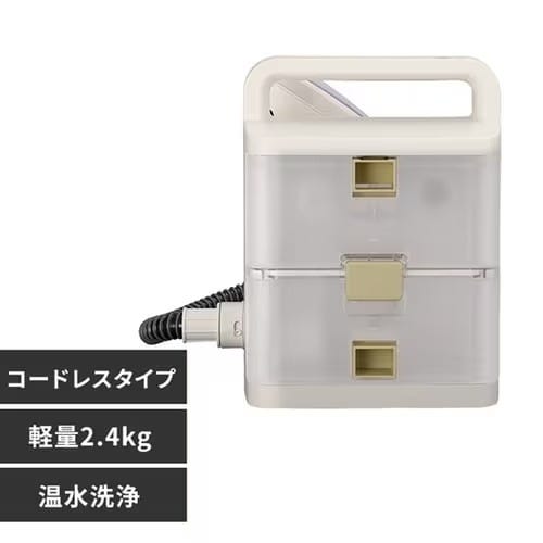 近くに電源がなくても洗浄できるコードレスタイプ。どこでもサッと取り出し直ぐにお掃除ができる。