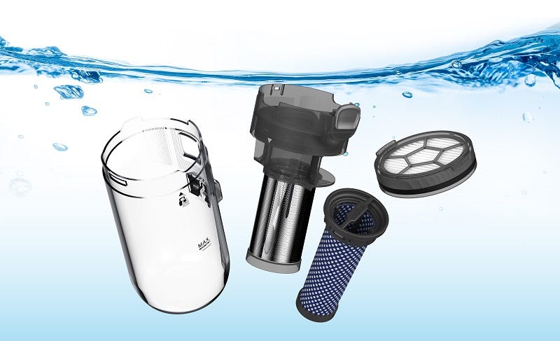 サイクロン構造で、ハウスダストによるフィルターの目詰まりを軽減。ダストボックスの容積も、約1.3倍(RS2と比較)大きくなったことで、ゴミ捨ての負担が軽減します。
