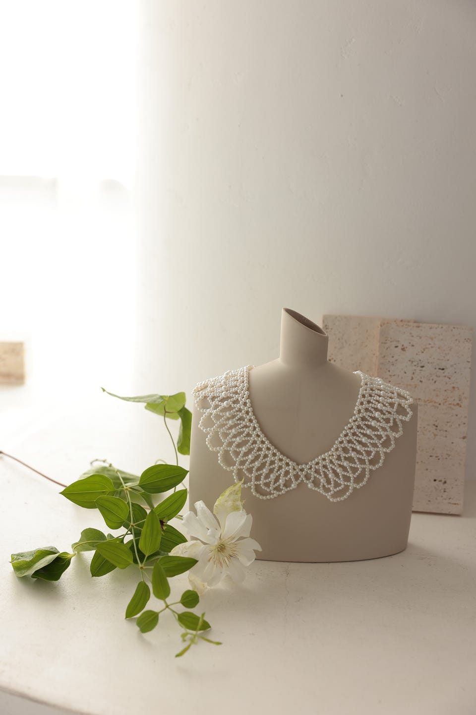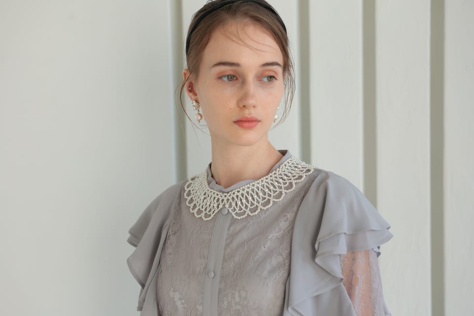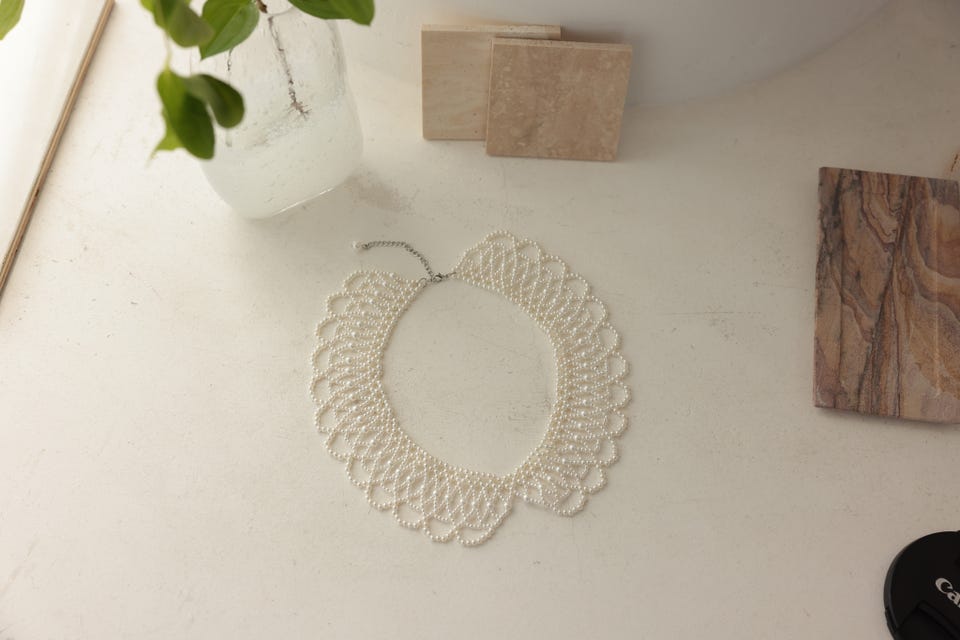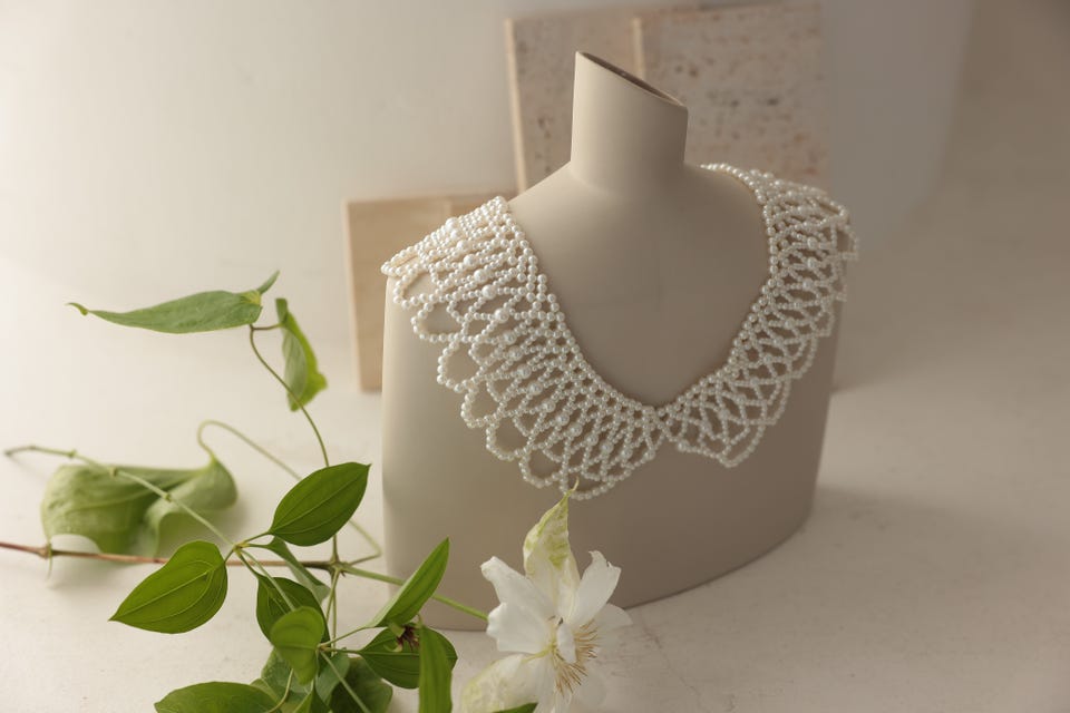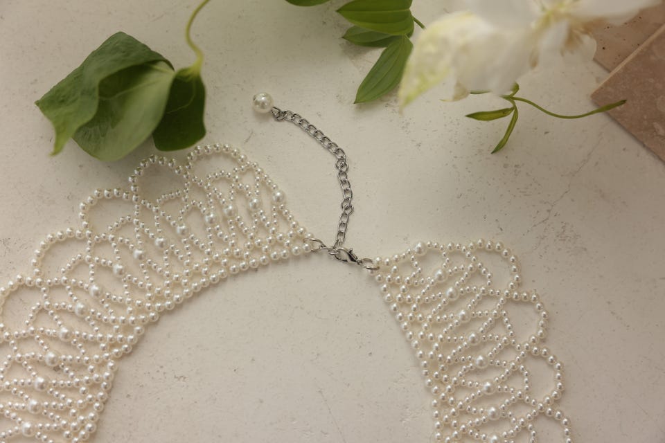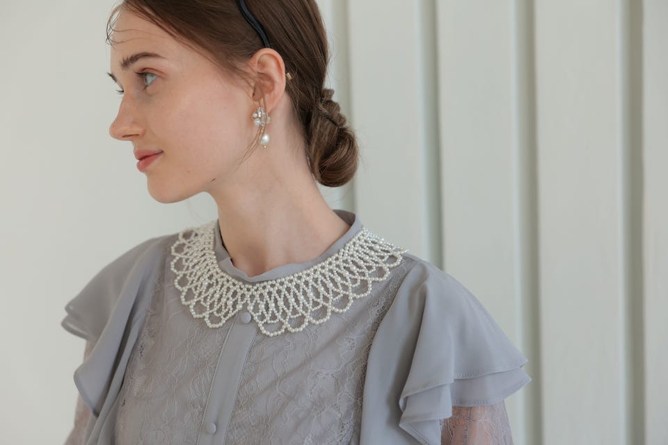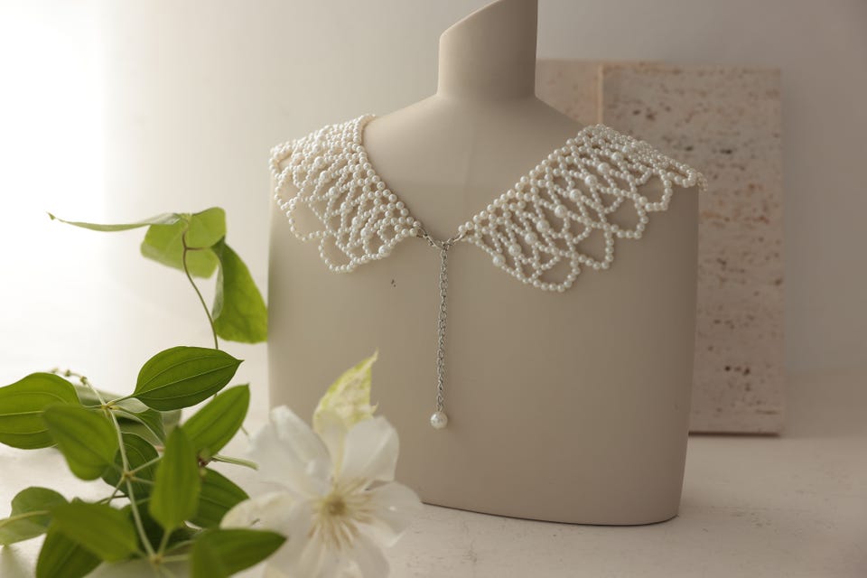 トレンドの付け襟をパールで仕上げたネックレス