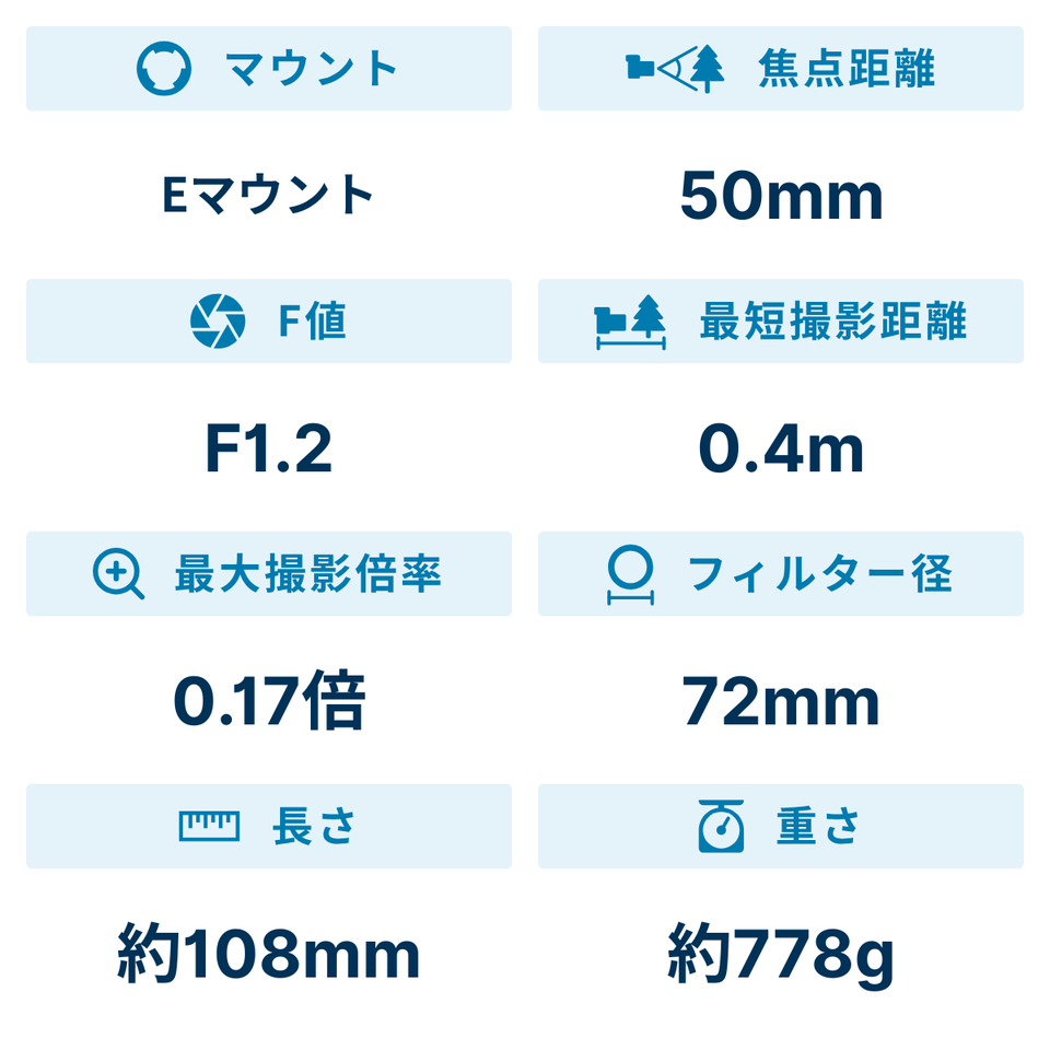 FE 50mm F1.2 GMでは、G Masterが誇る圧倒的な高解像性能や開放F1.2が魅せる美しくも柔らかいぼけ表現を得意としており、性能面で不満に感じることは一切無いでしょう。高性能を実現しながらも、大口径でありながら大きくなり過ぎることの無い携帯性も魅力の一つです。