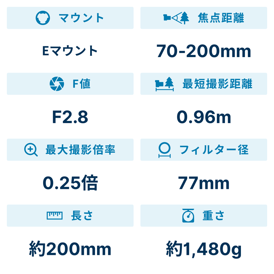 望遠レンズとして王道の70-200mmの焦点距離域を保有し、ズーム全域で開放F2.8を採用した、ソニーが誇る大三元レンズの一つです。望遠域をカバーすることで、風景写真からポートレート撮影など、あらゆる撮影シーンで活躍する存在として、活躍回数も自ずと増えてくるでしょう。