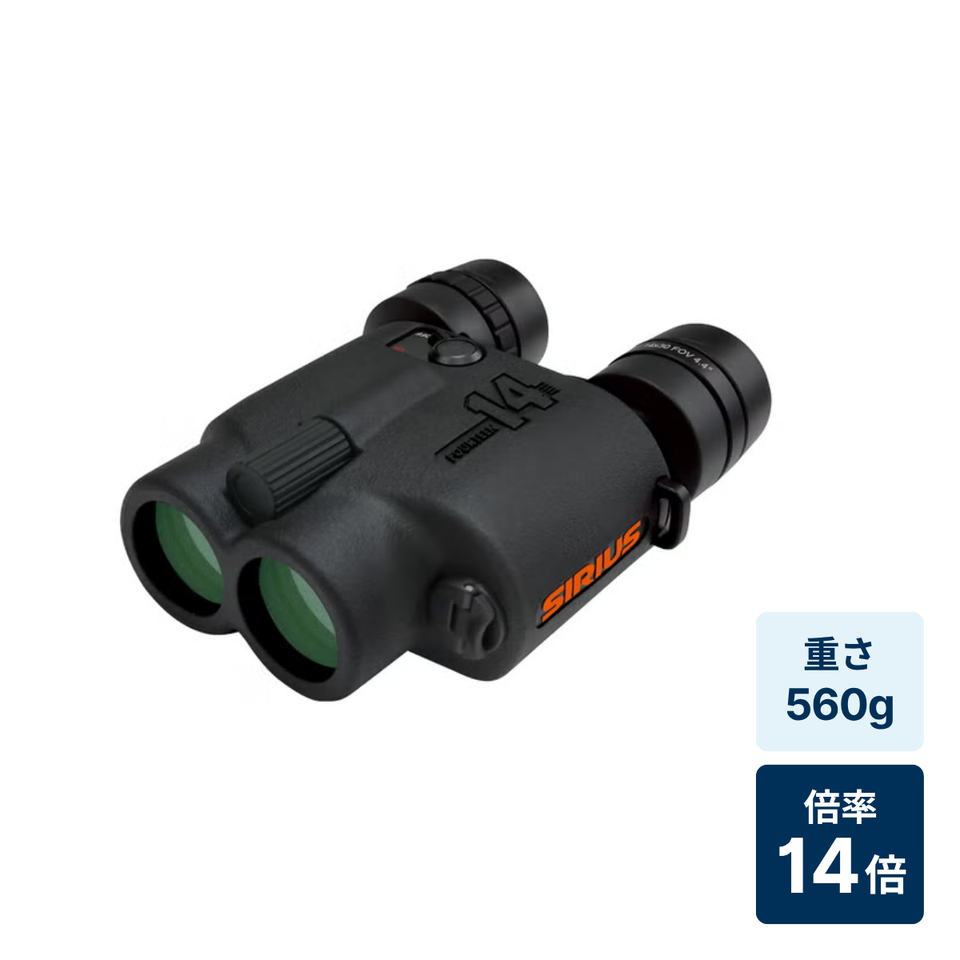 2つの防振モード、レバー切替ワンタッチ。14倍、雨にも強い防振双眼鏡、シリウス14。