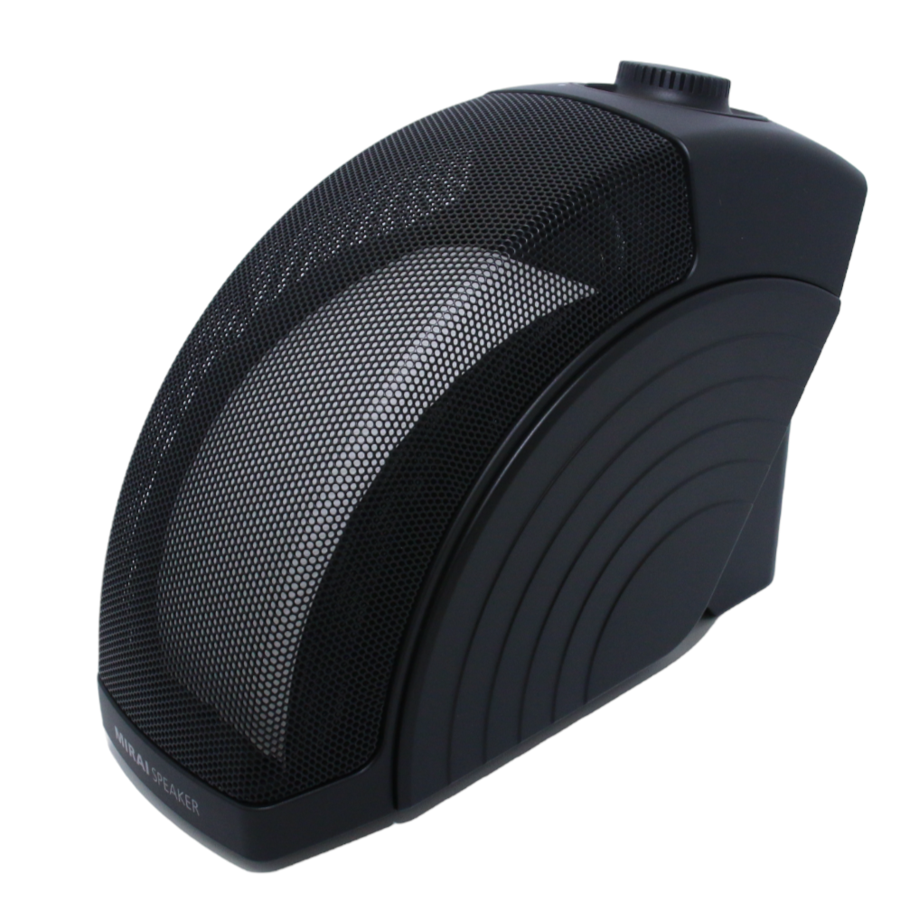 ミライスピーカーに採用しているスタイリッシュなカーブデザインは、インテリアに映える存在感。ちょっとしたスペースにもすっきりと収まり、どんな空間にも自然に馴染みます。