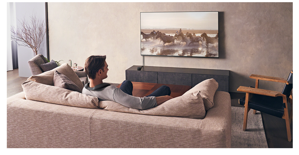 BRAVIA XR(TM)と同梱のワイヤレストランスミッターを接続し、ワイヤレスネックバンドスピーカーを接続することで、前後左右を中心とした従来のサラウンド音場に高さ方向の表現力を加えた、圧倒的な音の広がりをご堪能いただけます。5.1.2chの仮想スピーカーを作り立体音響を体感できるので、天井を含むさまざまな場所にスピーカーを設置する必要はありません。さらに、「360 Spatial Sound Personalizer」により、音場を一人一人に最適化することで、まるで映画の世界に入り込んだような臨場感あふれる「360立体音響」をお楽しみいただけます。