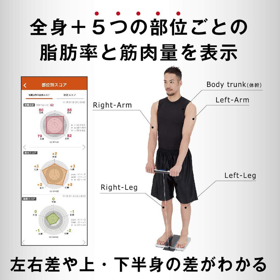 Bluetoothでスマートフォンと連携し、アプリ「ヘルスプラネット」に測定結果は全て記録することができます。体重、体脂肪率、筋肉量、筋質点数などの各指標はデータやグラフで閲覧することが出来ます。データの経時的な変化を捉え、自信のトレーニング成果を常に手元で把握することであなたのからだを最適な状態に導きます。