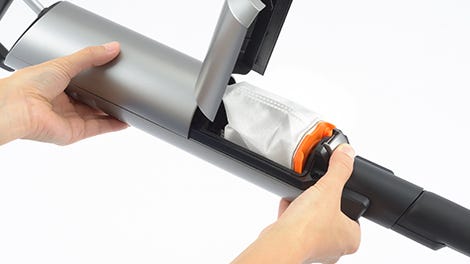 新設計の抗菌“ダストパック”には、微細なタルク粉を99.6%キャッチする不織布素材を使用し、排気もクリーン。“ラクステ”機能により、ワンタッチでゴミ捨てが可能になり、ホコリの舞い散りを抑えて不快感を軽減します。