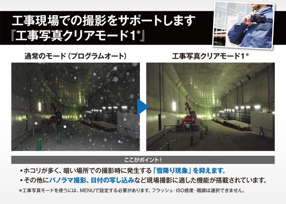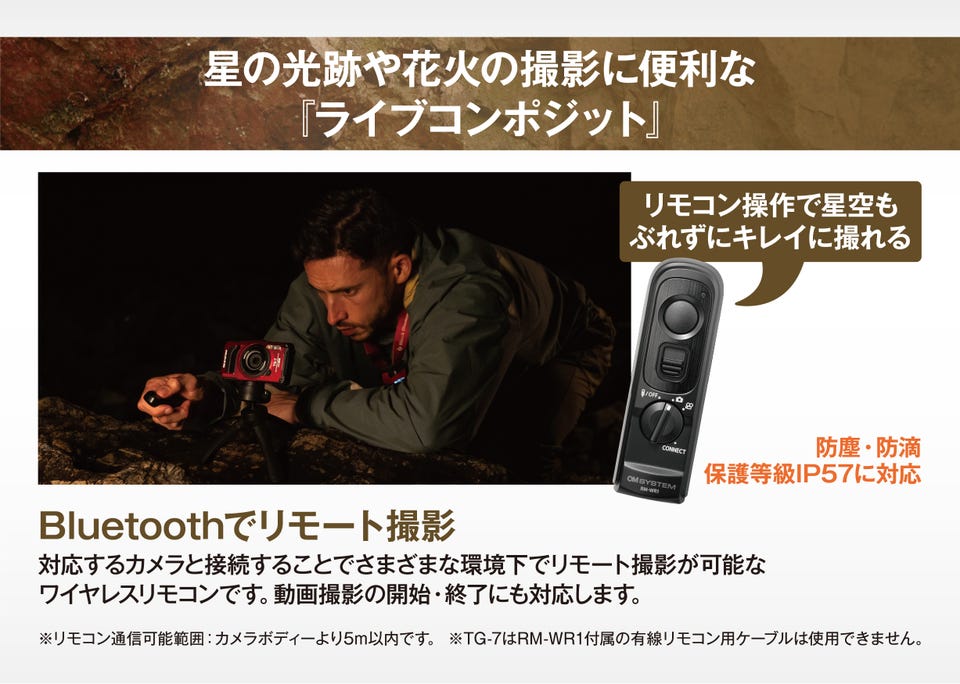 防水15m、防塵、耐衝撃2.1m、耐荷重100kgf、耐低温-10℃、耐結露といったタフ性能を実現。ハードな環境でも安心して撮影を楽しめます。
