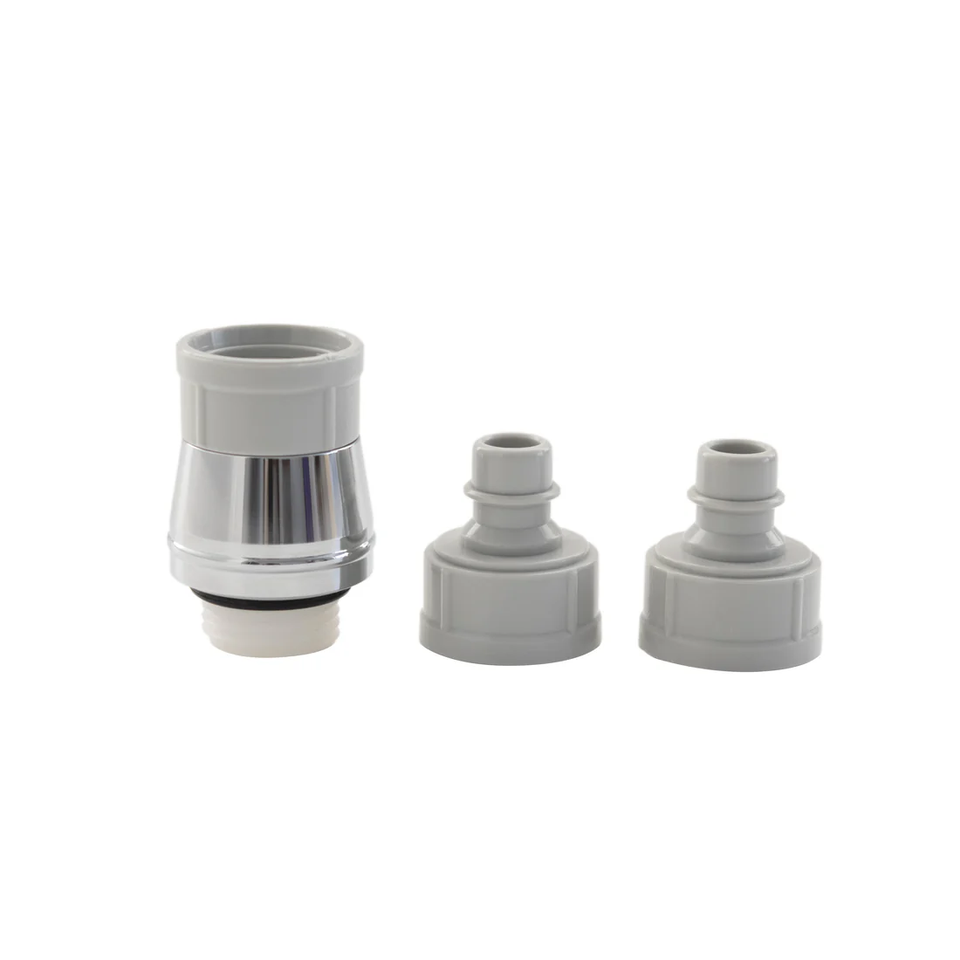 シャワーホースとシャワーヘッドにジョイントを取り付けるだけで「カチッ」とワンタッチでシャワーヘッドの取り換えができるようになります。グレーカラーなので多様なシャワーヘッド、お風呂場の景観にぴったりと馴染みます。