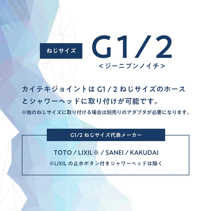 「G1/2」のネジ径シャワーに対応します。