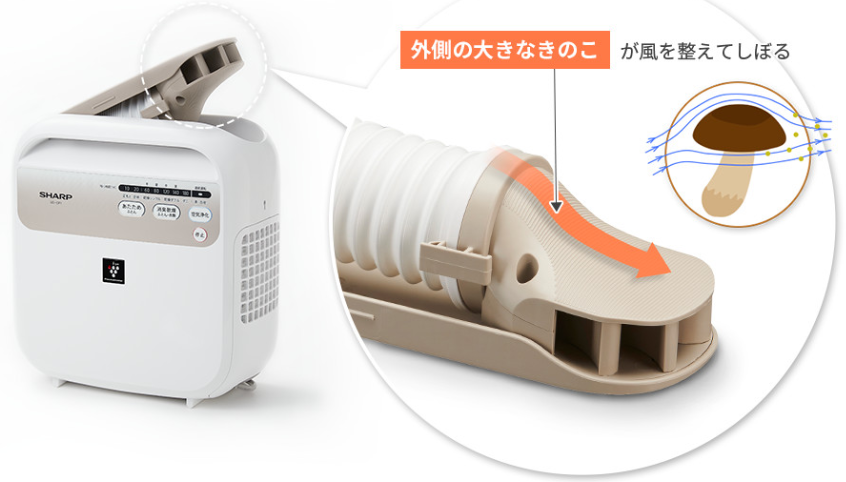 きのこアタッチメントをふとんに差し込むだけで、ダブルサイズのふとんまでしっかり「消臭乾燥」&「暖め」。冬もポカポカ。プラズマクラスターと温風で消臭しながら、ふとんを乾燥します。