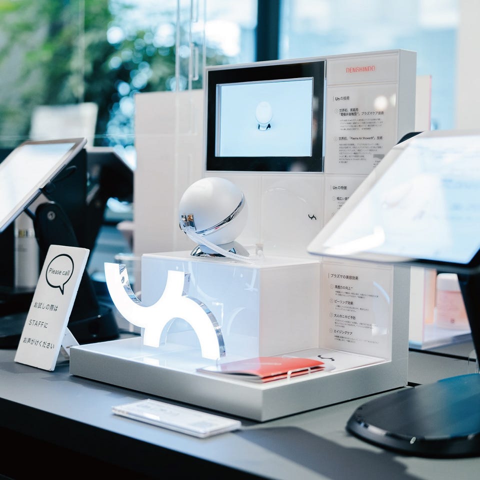 *美容クリニックで使用される大型プラズマシャワー機器をダウンサイジングして、ふんわり優しく肌ケアを実現する技術