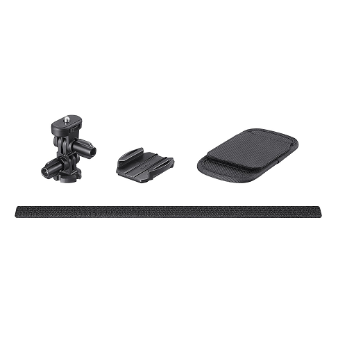 バックパックのショルダーベルトに、マウントとベルトで装着できるバックパックマウント。