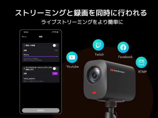 - 1080Pでライブストリーミング、QHD1440Pで録画