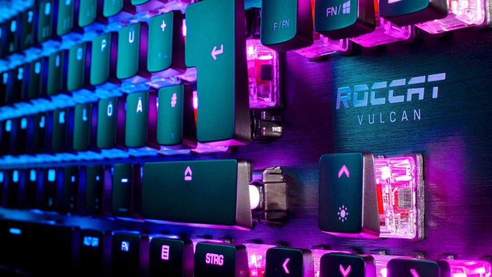 ROCCAT® Vulcan TKL コンパクトメカニカル RGB ゲーミングキーボードは、より小さなフォームファクターの中に、受賞歴を持つ Titan Switch Mechanical を備えています。業界最高水準の速度と反応性に加えてあらゆる機能が揃っており、ドローバックが一切ない、テンキーレスの利点すべてが詰め込まれています。