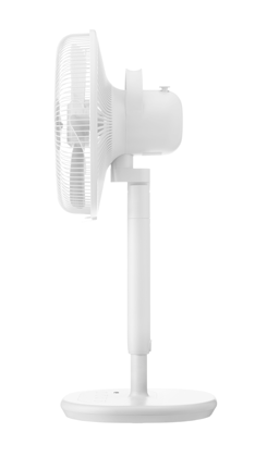 伸縮は足もと近くの高さ調節ボタンを押しながら動かします。 最大72.7cmまで伸ばせば一般的なリビングファンと同等の高さになるので、リビングでも寝室でもしっかり使えます。