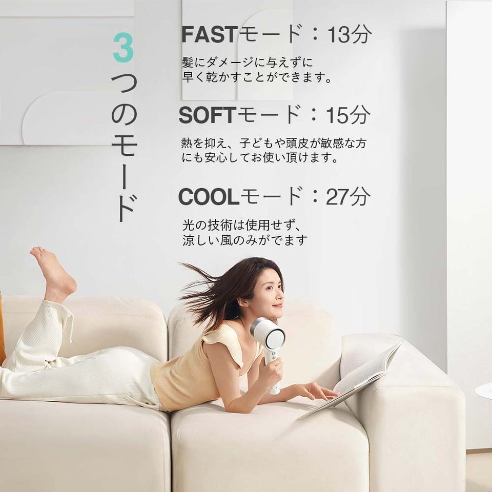 髪を過度に熱することなく乾燥できるため、熱を嫌がるお子様にも安心してお使い頂けます